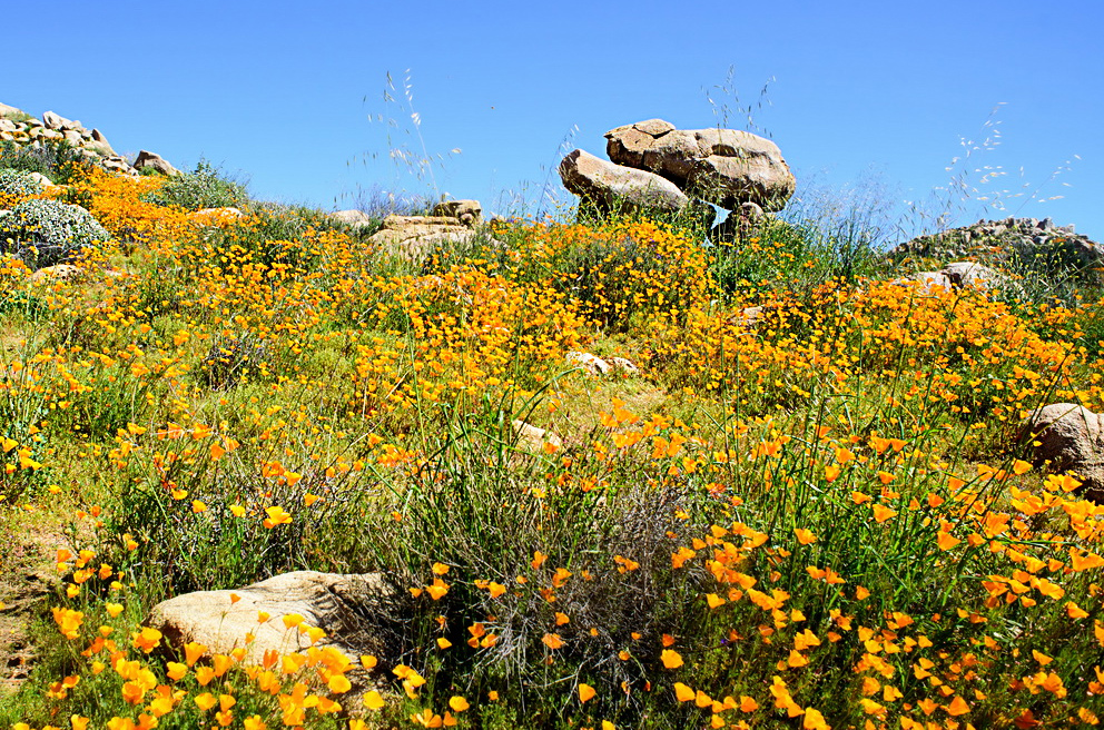 I love the colors, particularly the poppies! I also really like the stones in the top of the image, they remind me of a kind of standing stone found in Ireland called a dolmen or portal tomb. I agree with George, cropping the rock on the left would improve the image. Also I would like to see a better depth of field, the flowers at the top of the image seem a bit soft to me. You might be able to fix that up in Photoshop with a unsharp mask and mask it just for the middle and background. This could also just be an artifact of the size of the image, the original may be fine. I attached a file where I applied an unsharp mask layer masked for the background and middle and set to 65% opacity as an example. |