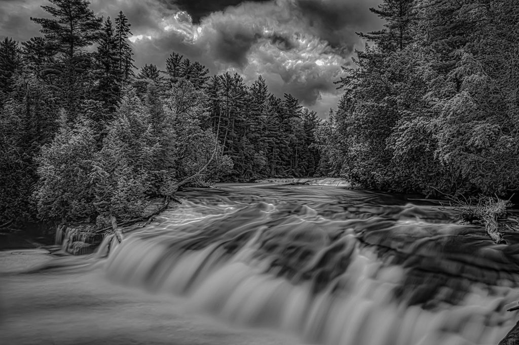 I really like this - how the clouds are mimicking the water. Nice use of a slow shutter which allows us to follow different paths through the water. Maybe use some subtle localised contrast on the trees to give some depth of field to them may break up the foliage some more. |