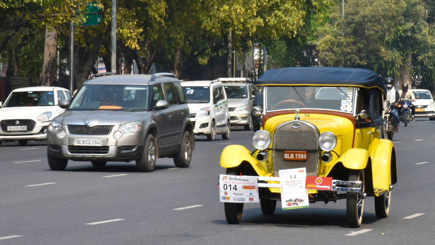 A very thought provoking idea: seeing (perhaps, even hearing) things used in past decades - here and now in our present 21st Century life. In this case, this turn of the century car (and appropriately painted in bright yellow) gets everyone's attention as it moves along with modern day traffic - 'a sight for sore eyes?' Maybe for some it is.