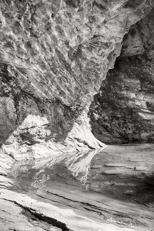 Good day, Georgianne! Really a lovely composition: love the details seen in the colored rock and reflection in the water - there are so many minute details to explore, but I feel key details are lost in the conversion to BW.
