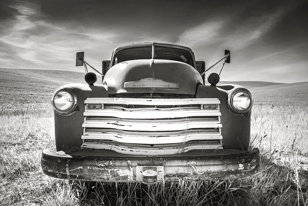 In this way, I kept the BW conversion as close as possible to mimic the color version: keeping the grill bright, but also emphasizing the sunlight that is illuminating the bottom of the front bumper....and area around it. |