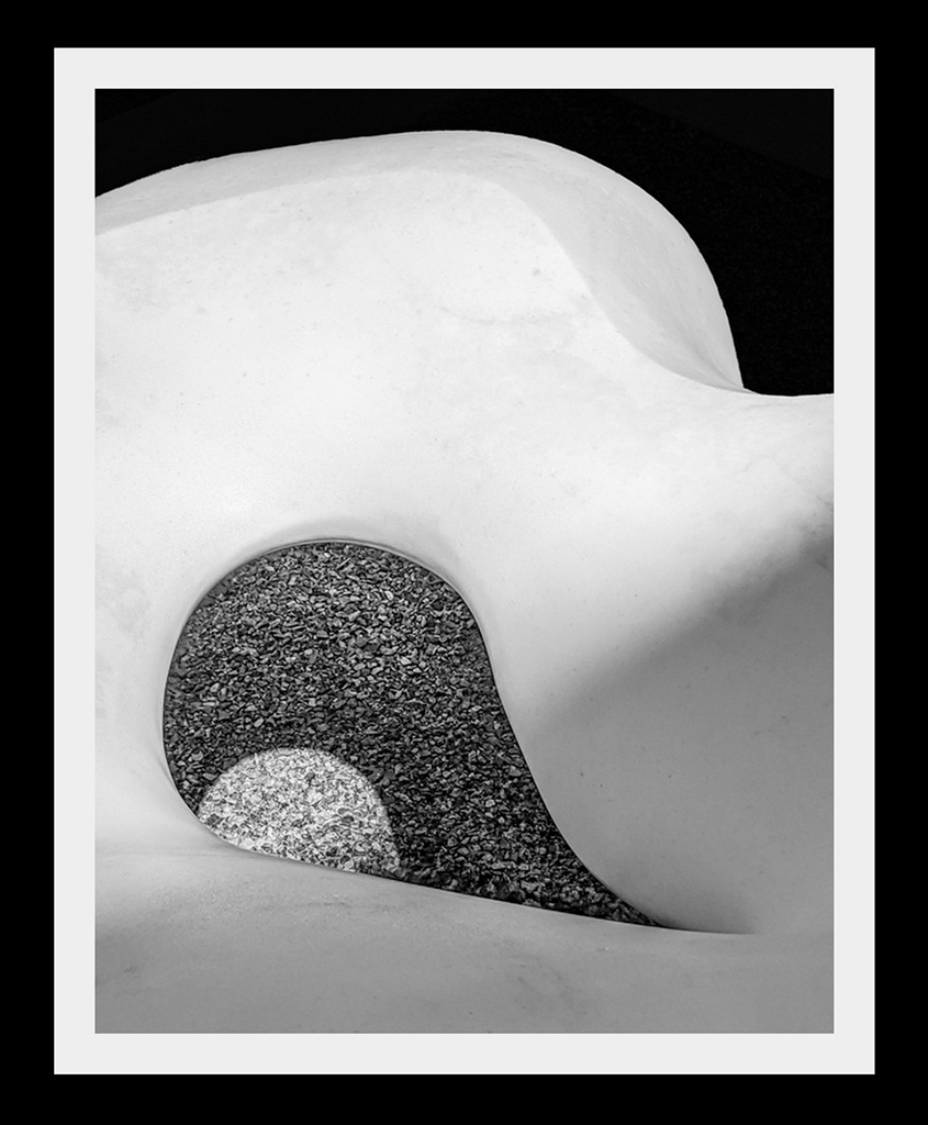 In my opinion, as a whole, I do not feel the piece is strong: I wish the white area of the marble was pure and not littered with its inherent and embedded artifacts; the composition calls for a smooth piece here. In this way the shadow, too, would be more appreciated or accepted. (I am not suggesting to manipulate-out the natural surface artifacts).
