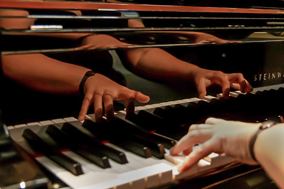 Editing: included the following: precise Dodge and Burning in PSCC and in Camera RAW adjusted the yellow and orange colors to help calm down the musicians hand, while increasing luminosity in the reflected hands. In affect, adjusting these colors (in this way) acted like Dodge & Burning. |