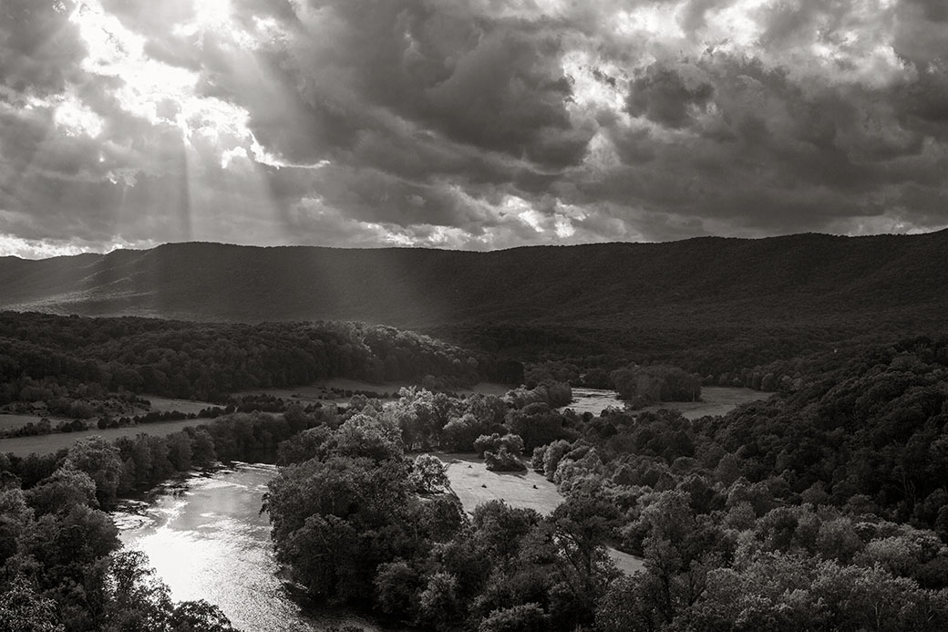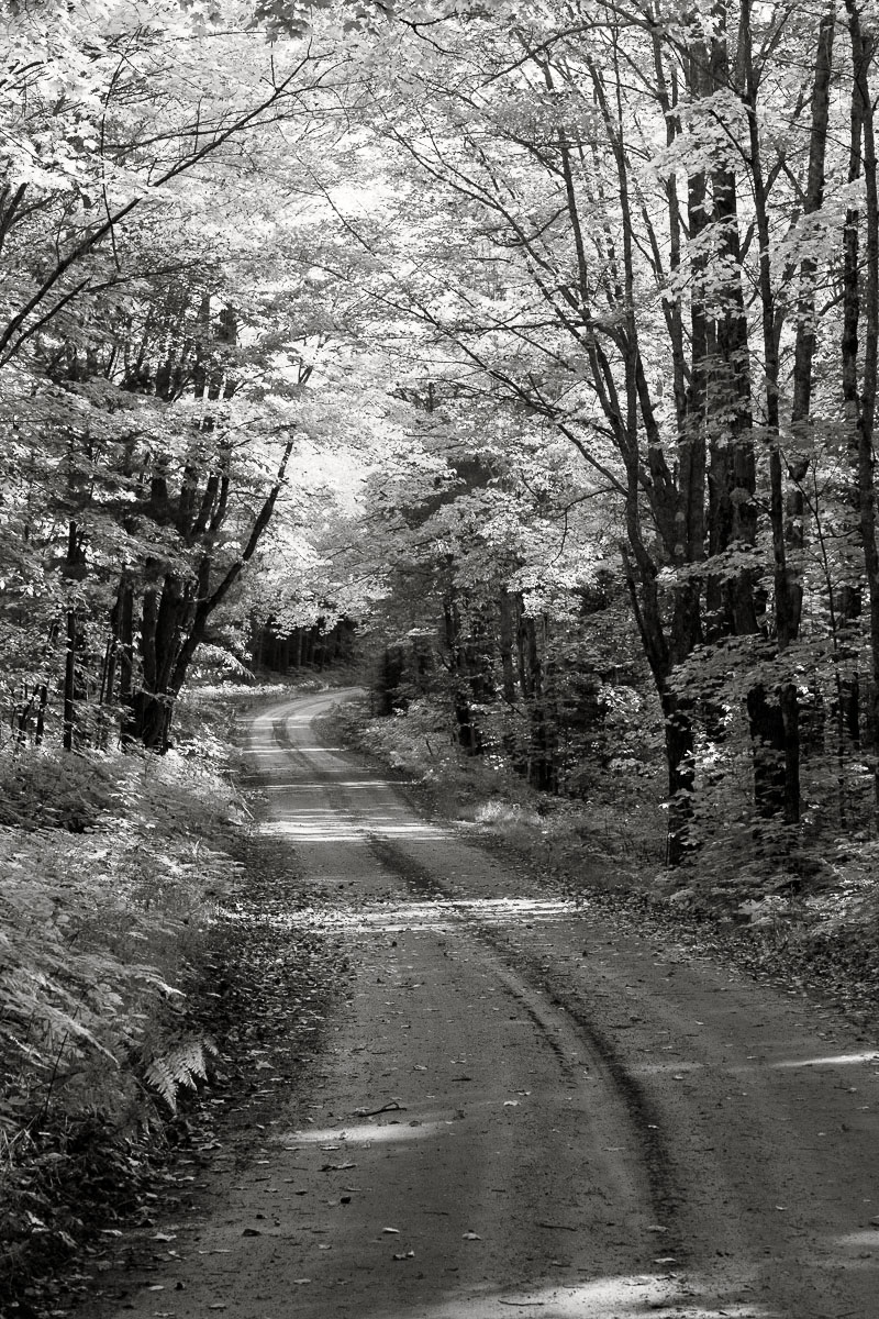 See my BW version that imbues a more bright aesthetic and maintains the steaks of light, even into the bushes on there left-side of the road. Both interpretations are valid, I do suggest the new version resembles the vividness of the color one more accuracy, however.
