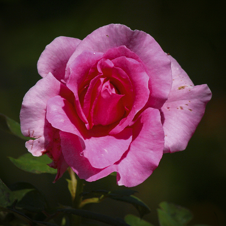 "Points to Ponder" ... regardless of how you treat the background, the Rose seems over-modulated, if I may: the term referencing sound emanating from a speaker, but here the Pink color seems to be doing the same: in this sense it is a bit harsh. I took the original image and edited the exposure some to get the pink "brightness" under control a bit more. (Now add this image to your background).