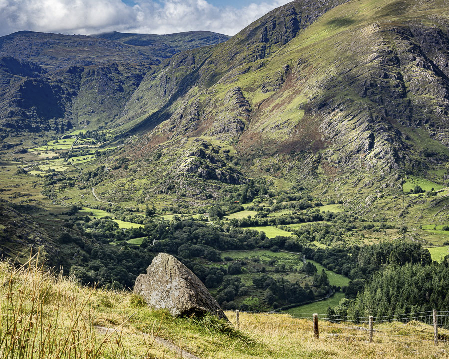 An interesting balance between the magnitude of the mountain range and the single large boulder in the foreground.