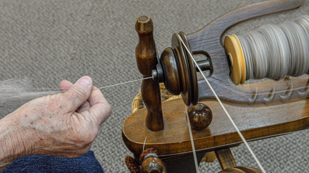 1. What I call, "compositional structure" basically refers to how any visual art is balanced (painting and photography for two examples) and I suggest perhaps a different lens or crop is needed for better balance. In this case, A. a different position to reveal more of the spinning Flyer and Bobbin or B. the use of a wider lens to offer an alternative perspective to do the same. (See my Edit that re-crops the featured work to a 16x9 ratio, and selective Dodge & Burning, all to help focus our attention on the mostly horizontal plane ours eyes focus along Jim has created).