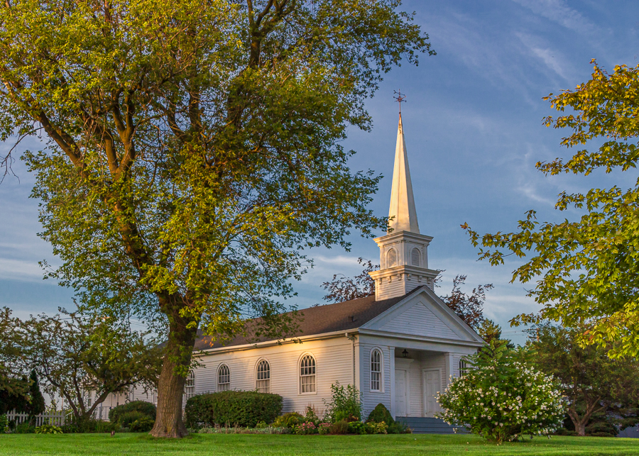 I applied a Polarizing filter, Dodge tool to (selectively) increase the shadows, and burned the steeple ever so lightly. Lastly, I gently applied Midtone Adjustment to help add contrast, but tried to still maintain the soft and gentle interactions between light, shadow and color. |
