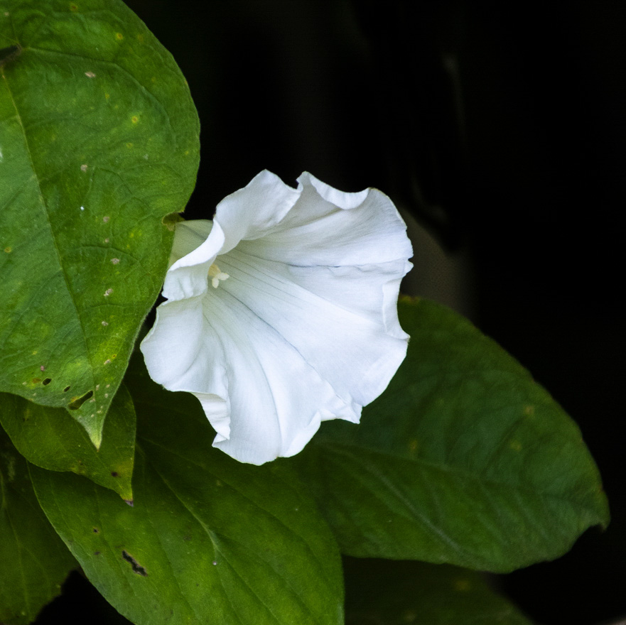Indeed, the stark white flower impacts the green and black surroundings that single out the flower as, seemingly, alone ... a solitary subject: simplicity often reveals much beauty.