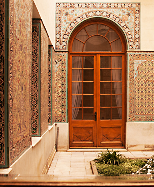 This is a really lovely doorway area. The colors are wonderful. I skewed the image in Photoshop and it seems to make those bars less cumbersome. I also tried a crop of just the left door and I like that too. |