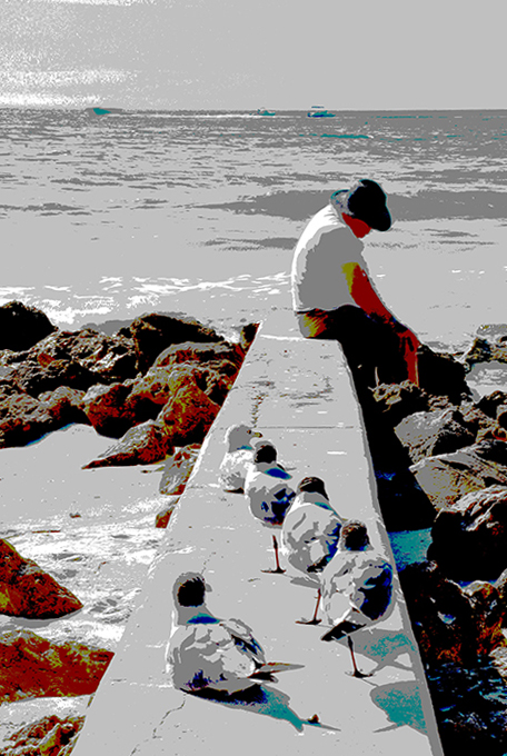 I would definitely straighten the horizon in this photo as someone informed me that oceans don't flow downhill. :-) It's a really nice photo. I would like to see the original as I might like that better than this painted one. |