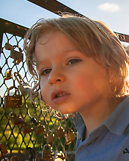 What a sweet and thoughtful expression on Lucas's face. Good capture. I prefer to have my subject looking into the photo and not out of it. I cropped the image to make this happen. I also increased both saturation and contrast on Photoshop CC. I then sharpened the image a bit more so that his eyes would be a bit more clear. |