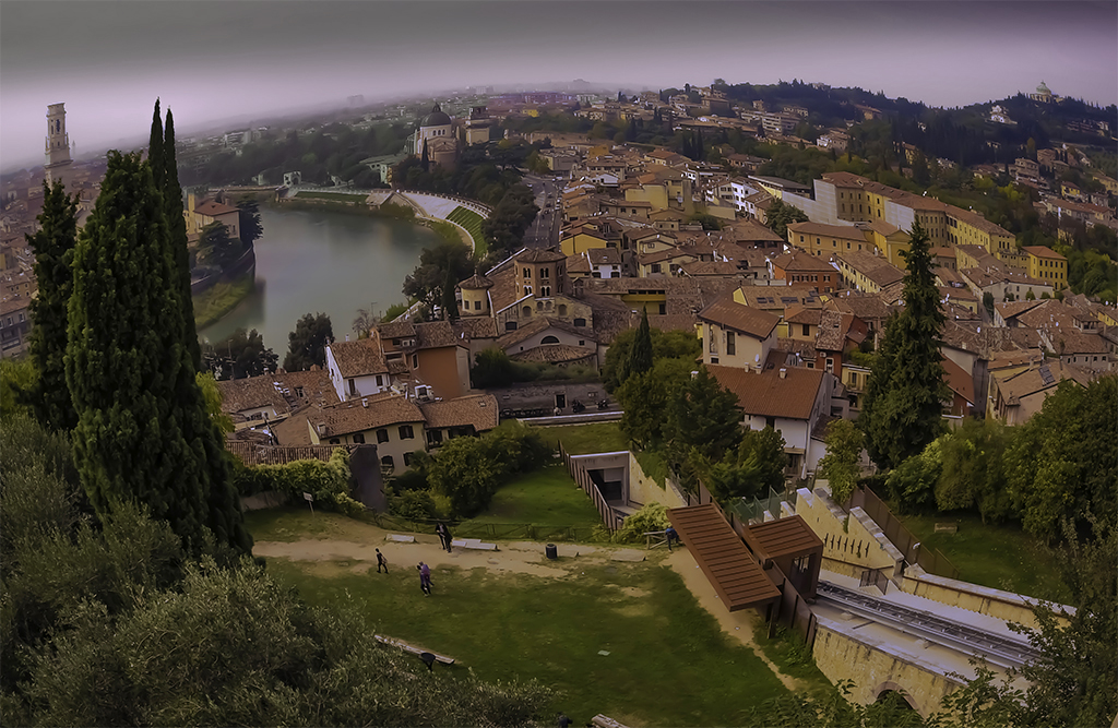 I love this photo!! I agree that a blue sky with this photo almost seems awkward since the photo has a bit of a soft foggy look. I tried desaturating the sky and adding just a touch of a pink hue to kind of match the rooftops. |