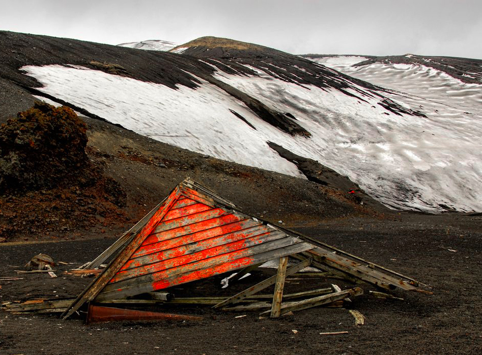 I like this image a lot. The red against the black and white mountains is really neat. I would crop it however, to get the red point out of the center of the image. |