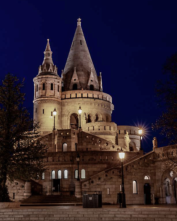 What a beautiful castle! I think I would enjoy taking pictures of that all day. I like your shot, but I think I like it better cropped a bit. I also lightened the sky a bit to make that night blue pop. |