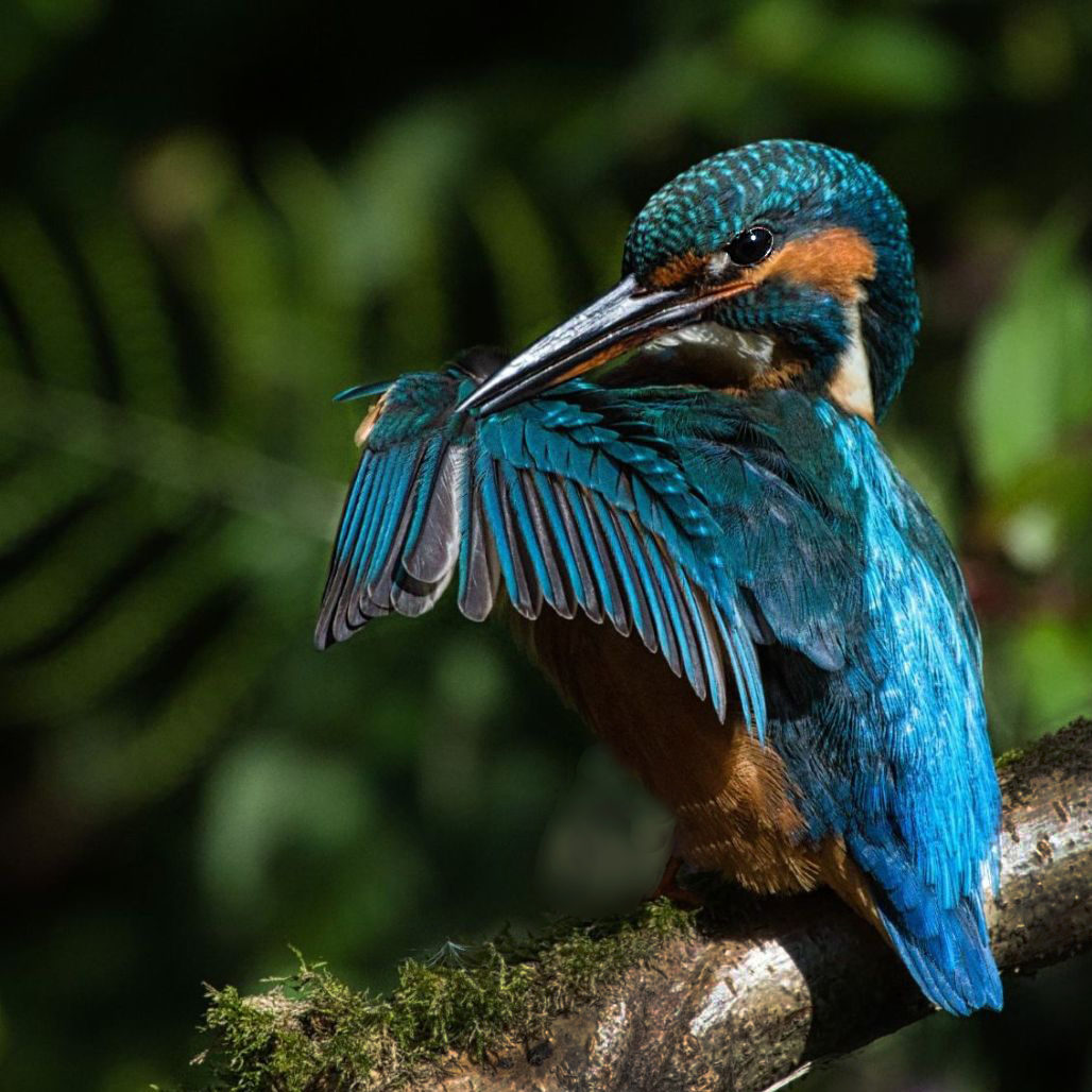 Beautiful sharp shot. I would fill the bright spot, sharpen the eye a bit, and crop slightly from the bottom and right. |