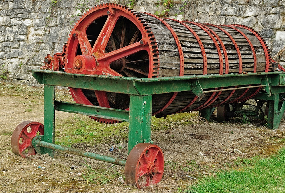 So,this was your excuse for missing the conference! I have never seen a wine press like this either. The lines are great as is,the color. It does seem oversaturated on my iPad. I took it into Snapseed and lowered the saturation a bit. |