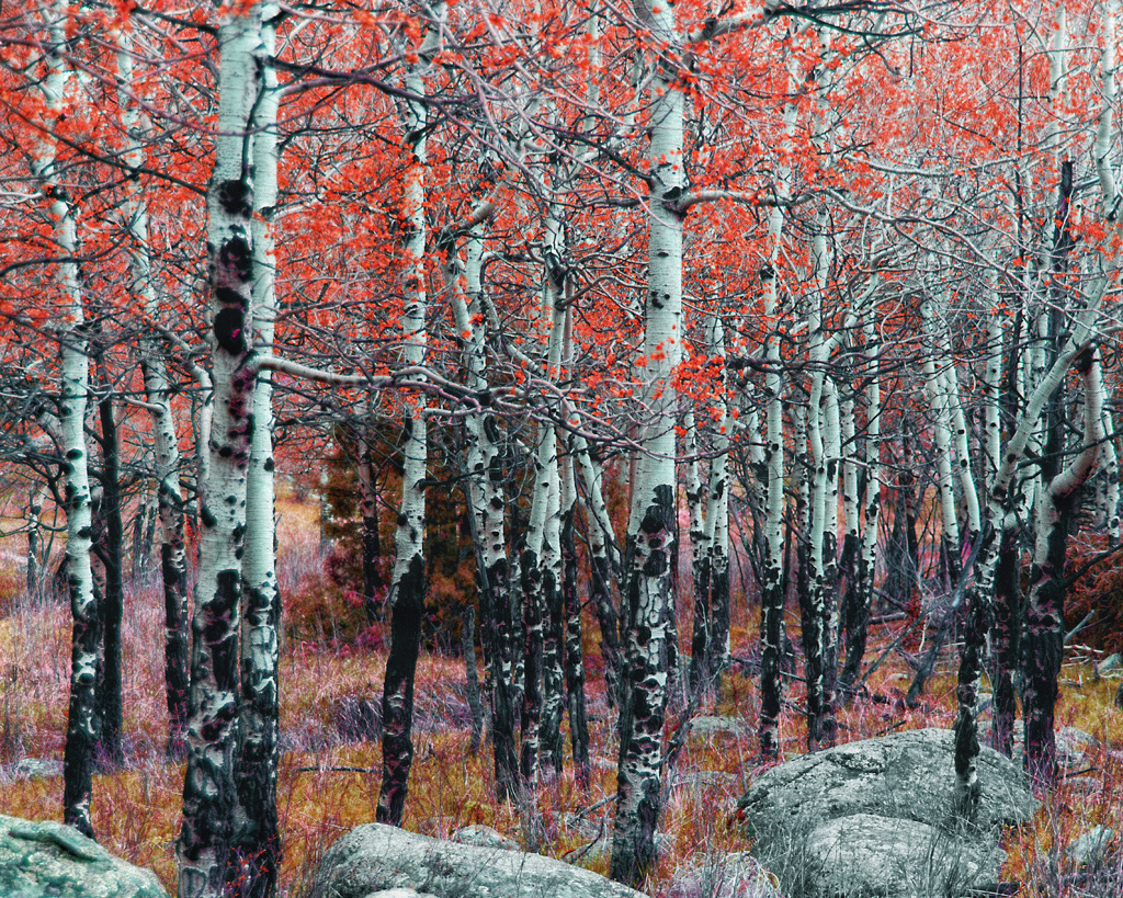 This is lovely and I like the red with the silver tree trunks. The boulders kind of give it a base, but I could go either way with them. I am working on my laptop so that may make your image look a bit "dull" I added some contrast in .CEP and also used a bit of detail extractor and glamour glow. I like the way you separated the 2 larger trees on the left; it adds a nice contrast to the group on the right. Well done |