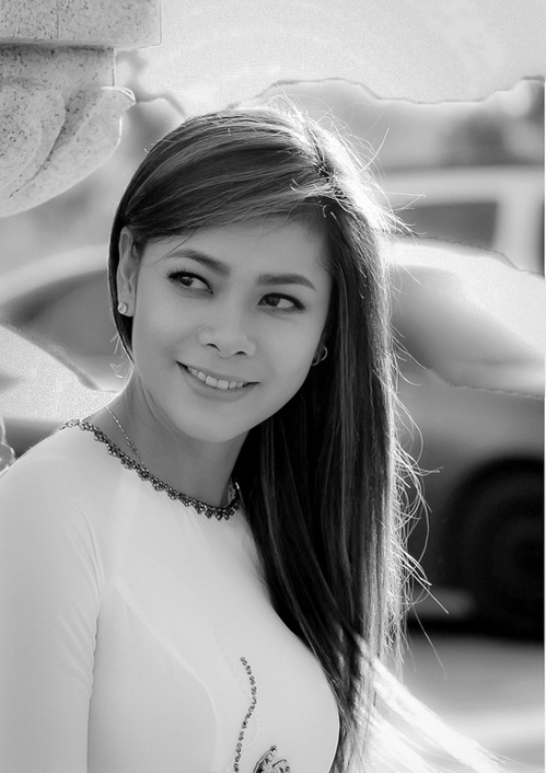 She is indeed a beautiful lady and you were lucky she agreed t pose for you. I think the background really hurts the lovely image. There are several bright spots around the image. I darkened them a bit and cropped a little too. I think if you out her on a plain background, it would be a much better image. |