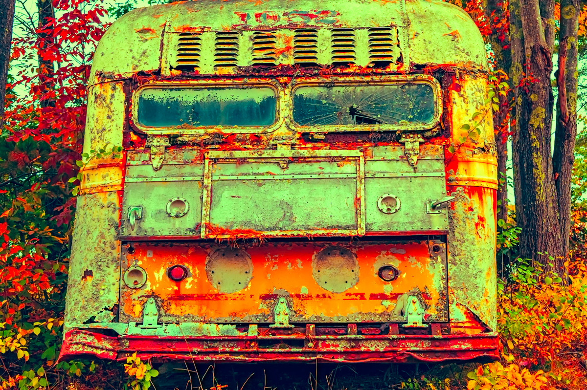 Bob, This is my kind of subject and I had to play with it. As much as I love monochrome, I think the bus needs color so I used a legacy Topaz plugin called restyle and came up with a wild version. I am traveling and using my laptop. I hope I can get the plugin on a new PC I am getting. |