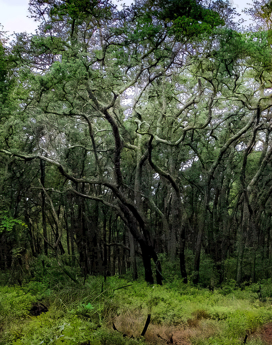 I am drawn to the trees in the background. I used Gigapixel to enlarge the image and then cropped it. I used poster edges in Elements for a different effect. This is an image that can have multiple versions. I like the original with the tree trunks too. |