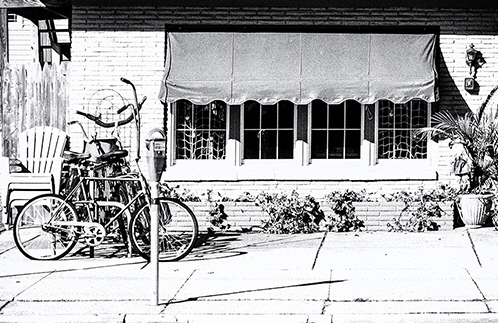 Incorporating Dales and Jon's cropping ideas and taking out the roof and road plus curb as well produces an image where my eyes do go to the bikes, although I still wish they were somewhat more distinct. |