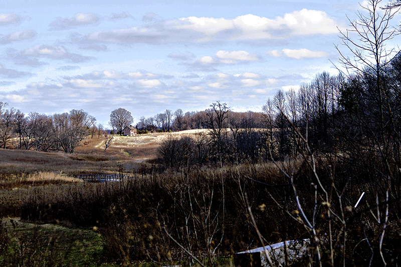 In this version I have used a tone curve to increase contrast in the sky and then I used a little color correction to increase the saturation of faint blues. I have not included Dorinda's crop, but I think that it also moves the image closer to what attracted you to take the shot. This image also illustrates the problem I tried to address in Leonid's image--when you look at the sky, you see the texture there and you don't notice the dark ground. Then when you look at objects on the ground, your eye adjusts and you see them, but your visual system now is no longer processing the clouds, it remembers how the clouds looked. Thus, you end up feeling that the entire scene is decently exposed, but when your camera takes the picture, it takes the whole thing at once with one exposure, and either the sky and clouds are overexposed or the ground is underexposed. The resulting image then needs some processing in order for it to look as your brain "saw" the scene. |