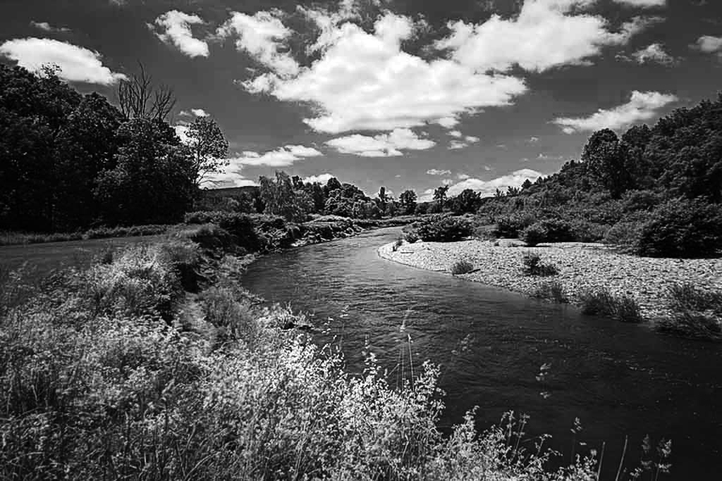 Dorinda's clouds have a little more texture. It is a nice picture of a nice location, but because the river is rather calm, it feels like something might be missing, a stump, a canoe, a boulder? Instead of adding an object, I find that I like this better in B&W with the contrast increase substituting for the missing foreground object. |