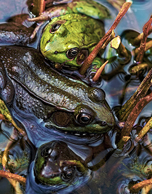 Dorinda's crop helped me a lot with this image. Now the frogs are prominent and I really like it. I think Dorinda also reduced the brightness of Jessica's image, but I prefer the image resulting from reducing the color saturation by about 20%. |