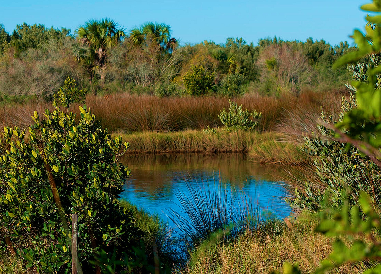 The difference in the color of the reflected sky and the sky itself likely results from the fact that the reflection consists primarily of horizontally polarized light whereas the sky's light is both horizontally and vertically polarized.