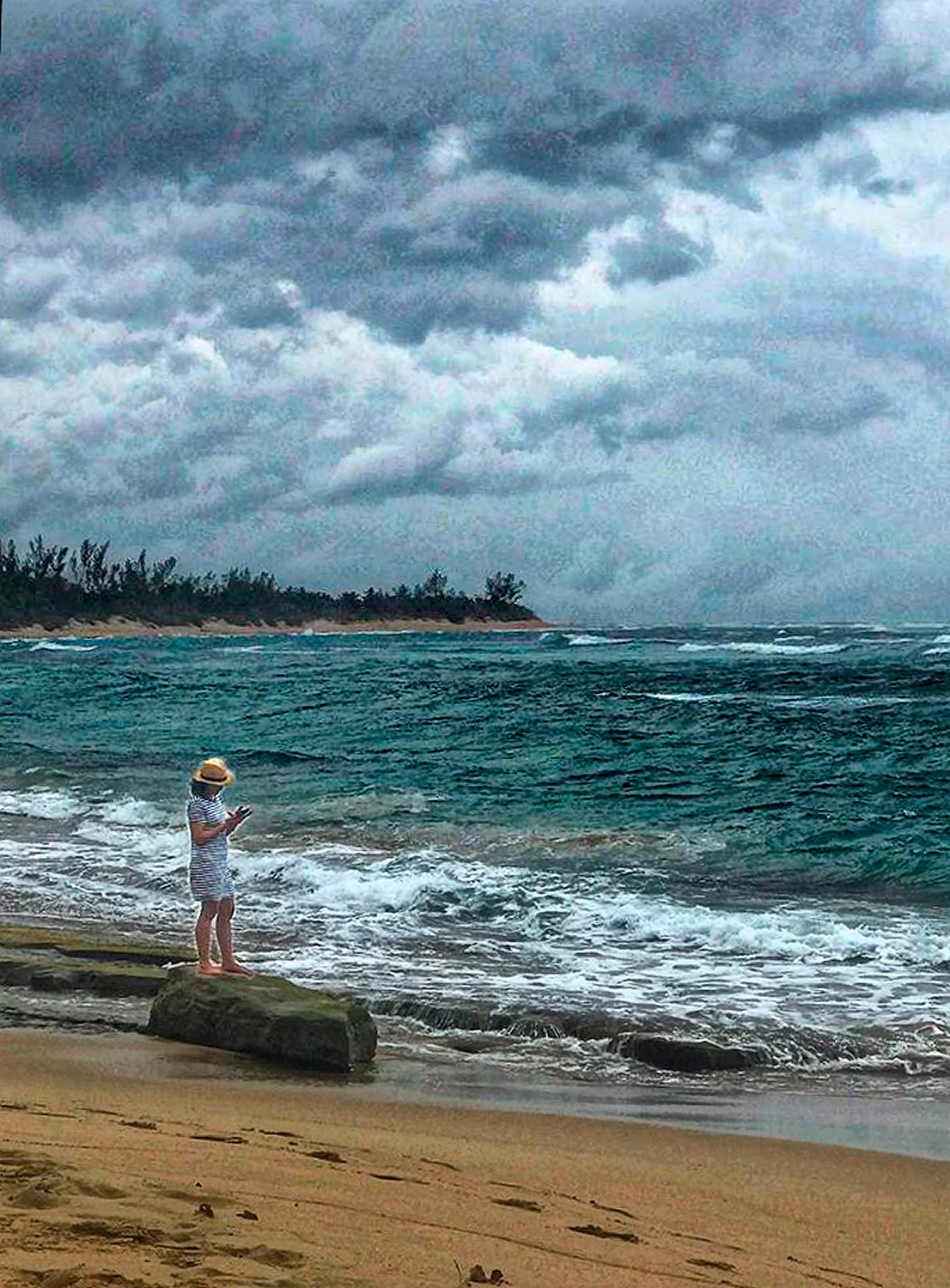 Oliver's brightening of the woman helps a lot, but at a loss of the feeling of the stormy day. I wonder if there is a way to retain that and still brighten the woman? Here is my attempt at it where I have also leveled the horizon, but not added Oliver's vignetting. |