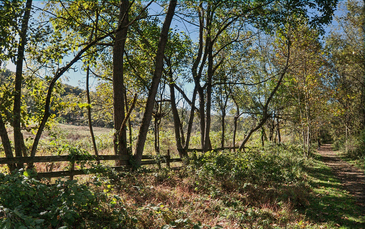 With respect to Judy's concern, I've darkened that vegetation on the lower left and cropped from the left and bottom to reduce its area. I do like the tree trunks on the left that I have retained as they seem to frame the image on the left. Cropping from the bottom also increased the relative length of the path on the right. Not having content aware, I couldn't do the equivalent with my editing program.