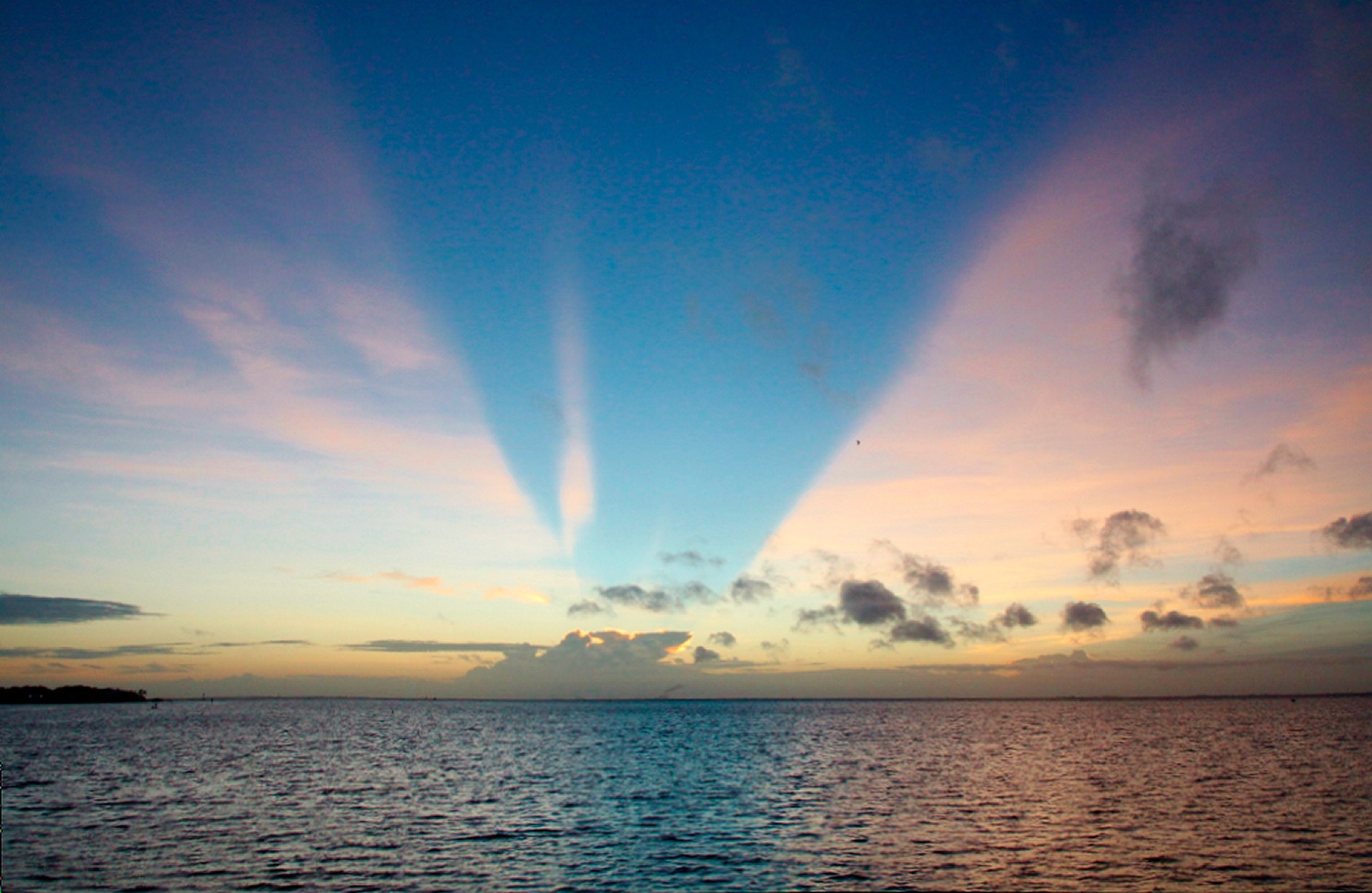 This is really nice. It must be thrilling to see a sunrise like this. I removed the curvature of the horizon and leveled it and increased saturation a bit to produce this. This would be a real stunner if it contained a bird or two or a boat in the foreground. |