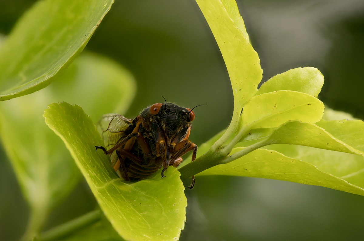 I don't know why the right eye is not sharp. I've looked at all the images in the focus stack, and none are more sharp than the composite. Possibly it is just the angle at which we are seeing the eye? I reprocessed the focus stack using Helicon. It did do a better job on the edges of the eye, but the compound structure of the eye is not visible, just like the image that I posted. The cicada was about an inch and a half long and it was about 16 inches from the front of my lens. Here is the original focus stack. As you can see, what I posted is only a small fraction of the original image. |
