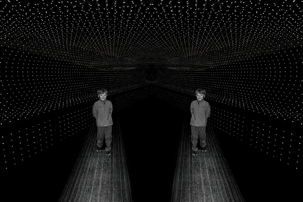 I love the asymmetry of this image. Your grandson is a great subject! My only suggestion is to clone out at least the first 4 posts, if not all of them. To my eye, that would make it more of a mystery of where he is. Although I admit that I had no idea that this was a tunnel in the National Gallery of Art.