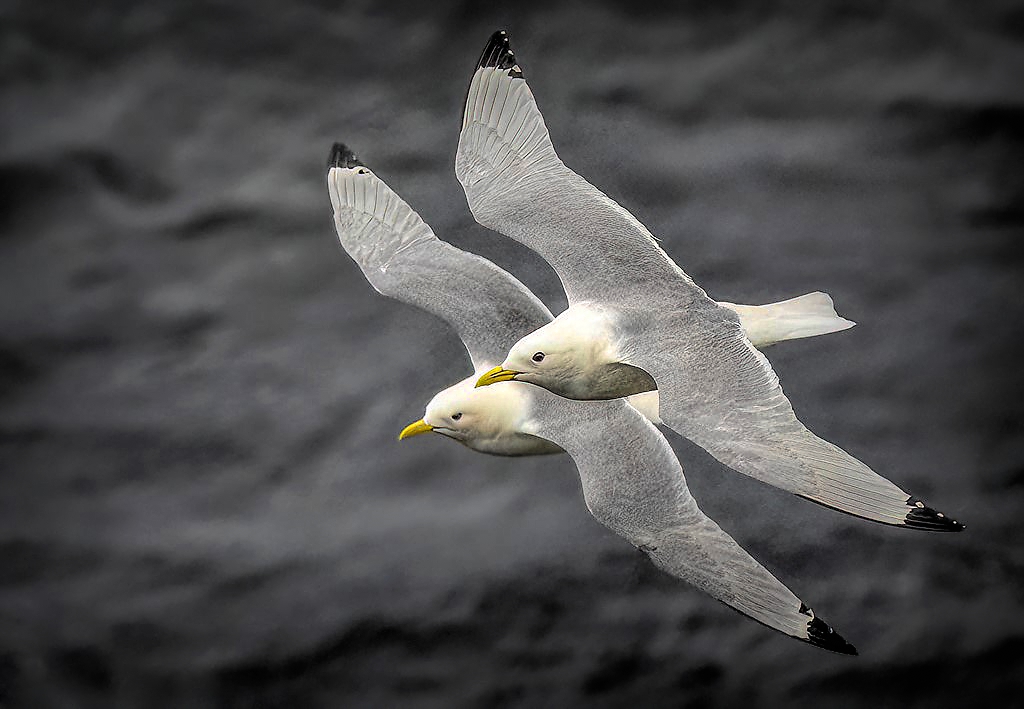 Kittiwake gulls have gray wings, so your processing turned them into a different species! :-)