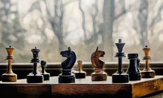 I love the story behind the image. My eye is drawn to the bright outdoors, which to me, dwarfs the chess set. My suggestion is to make the chess set more of the focus, perhaps by ensuring it takes up a third of the image (rule of thirds). A future assignment is to have foreground and background in focus, which I've been told is the classic way to tell a story. You might consider reshooting the scene with that in mind.