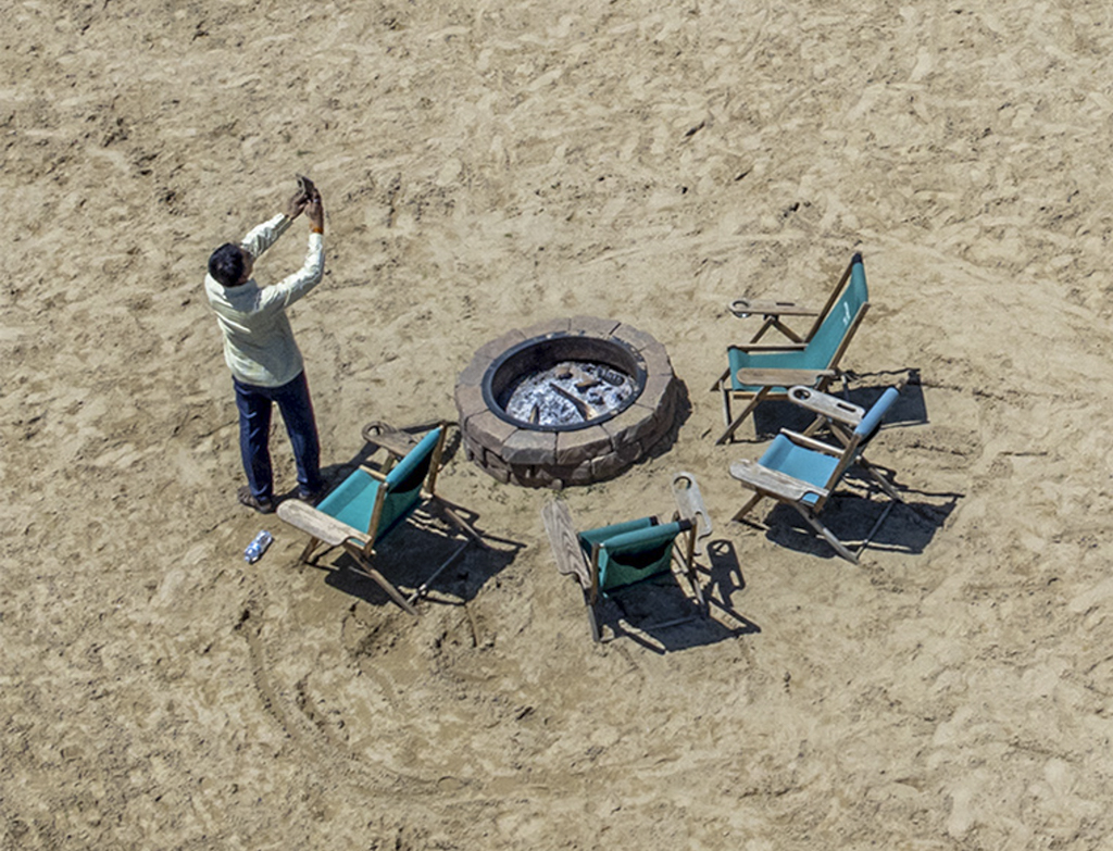 Hi Harley, While the concept of photographing a photographer is interesting, to my eye, the empty space in the center detracts from the story. The second fire pit doesn't seem to add much. Have you thought about cropping it? |