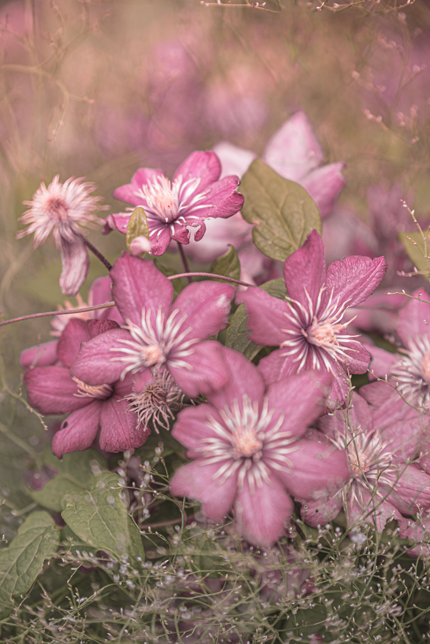 The blurring was in-camera based on the F-Stop of 2.8. I did several things in lightroom. It was the first time that I didn't do any work in PS. I didn't realize there were presets in LR, I used "Soft Mist". I usually don't mess with curves, but in the Develop module, I pressed "Tone Curve" and played with the RGB channels separately. Oh, I now know how to use the graduated filter and I did that with a magenta hue. Yikes, I just realized that I uploaded an interim file. Here's the last one I did. |