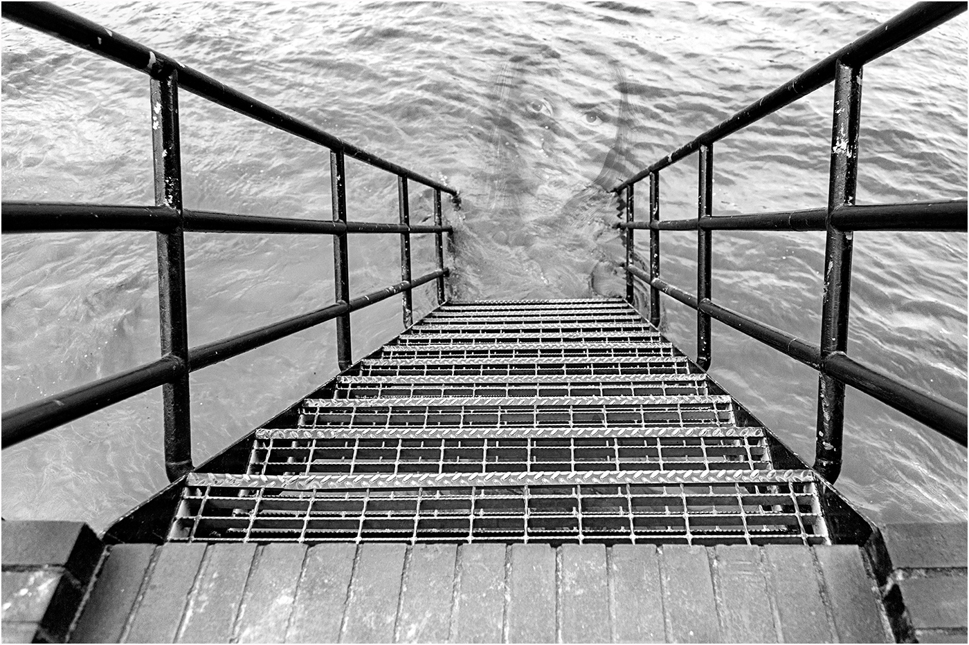 The face was the most distraught one I could find, but bow to your comments and have replaced it with one looking more into the camera, plus I've made it bigger so as not to feel like a real person in the water.