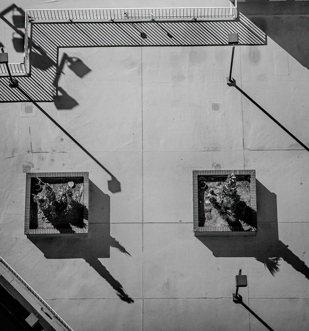 Interesting concept just to use graphic shapes, and repeating patterns. My thoughts were to tidy up the top right shadow and then to enhance the contrast and sharpen to really make the lines punchy.