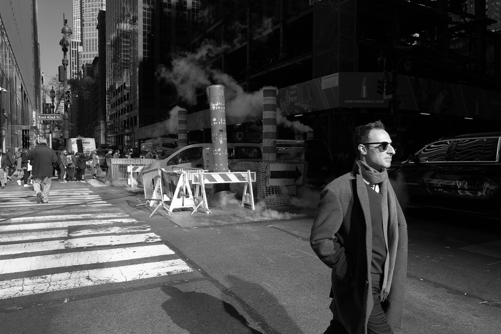 Super street shot, and using monochrome was the right choice in my book. I have to disagree with Helen (that's twice this month, good job she lives on the other side of the planet) about straightening the two chimneys, they are part of the disorganised scene and the buildings give the verticals that keep the image upright.