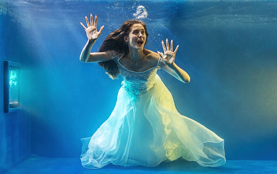 Taken at the same time as my August 2021 submission where I hired a large tank of water and 3 models for an underwater shoot. The girls chose different outfits including this wedding dress that I bought in a charity shop, and a fishtail outfit for mermaid shots. They took turns to enter the tank and just enjoy shooting from side to side, or performing twists and turns with coloured veils. Direction was impossible as they were underwater so only had a concept from before they started each session. This was another from the same model still in the dress.