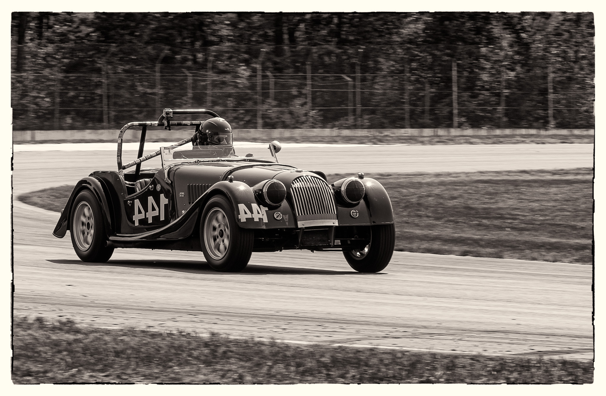 Wonderful image! The feeling of motion is very strong and the car and driver are tack sharp. The monotone version is much better than the original. Since we usually move our eyes left to right on the page I flipped your image to see how that would look. To me, it feels as if now the car is going backward! Maybe it's because of the numbers.