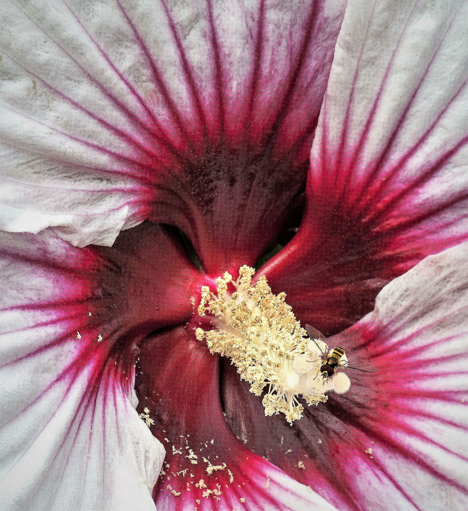 It is sharp all the way and interesting symmetry. Darken background makes the image stand out. |