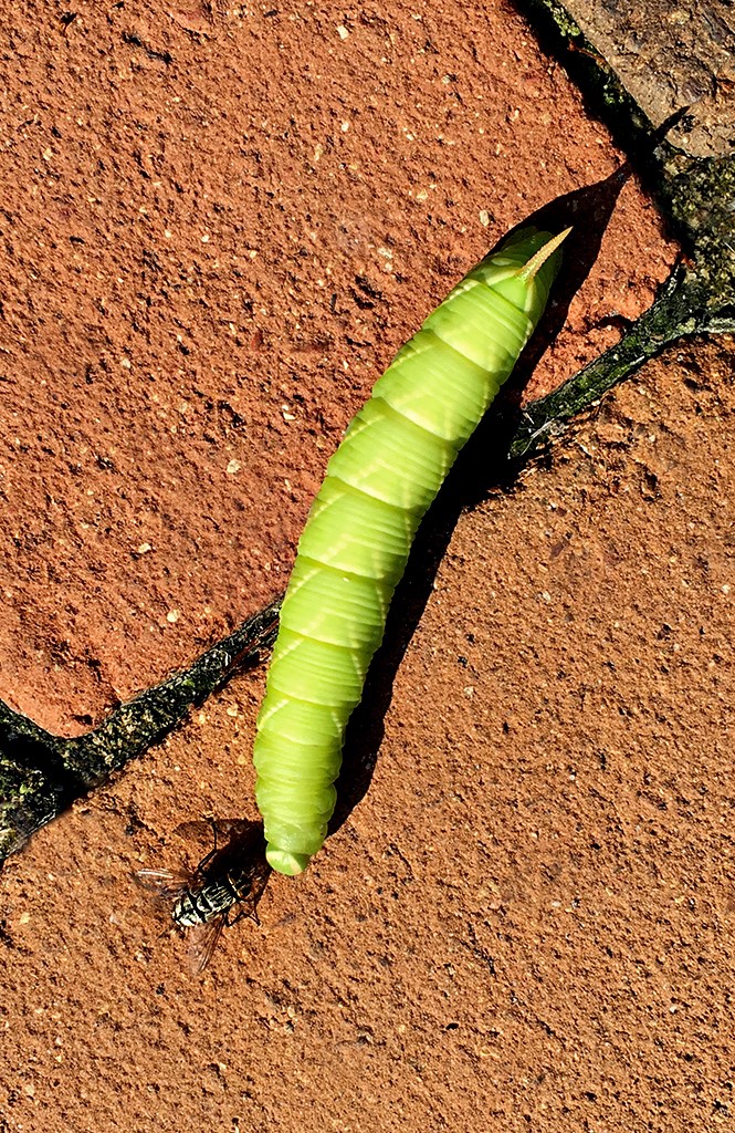 I like the bug, nice contrasts with the very green caterpillar against the reddish brown background. The image is very sharp and detail, good job. By the way, I like your reworked version better and I rotate the photo 90 degree counterclockwise to bring the attention even more to the fly and the caterpillar. |