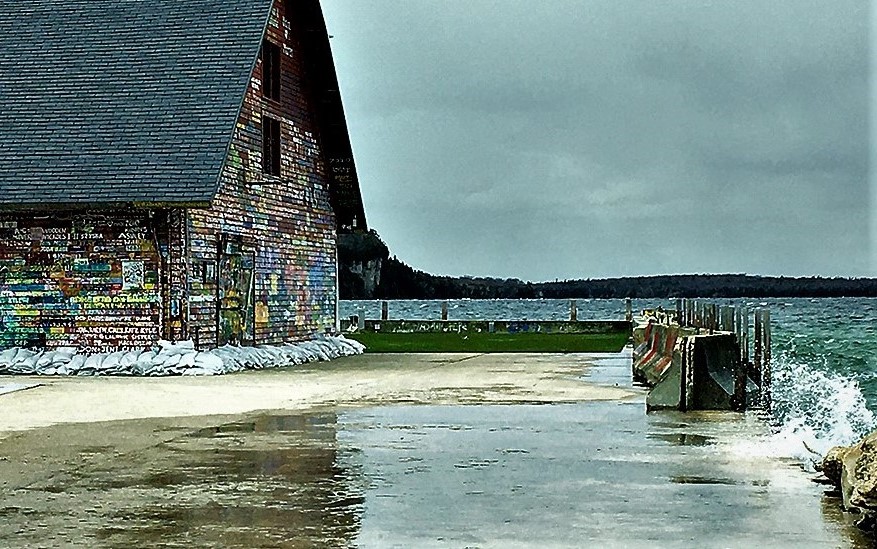You tell a compelling story. I like the composition, balance, and vivid colors. The image is sharp and the graffiti on the wall has a very impressive appearance. I would crop out even more from the left side and the small portion of the sky from the top to focus on the subject "HIGH WATER".See cropped image below. |