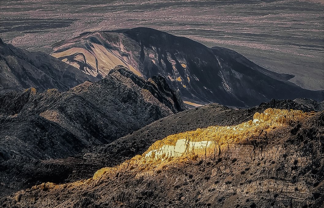 Very nice capture of the desert scene. The light brush in the foreground makes the F/G an important element of the image, I love it. I think the barren land in the top right corner is a bit distracting. I would crop it out. In my opinion, the PP Lighting/Sharpen is a bit over done. I suggest that you tone it down a little. Here is my version. |