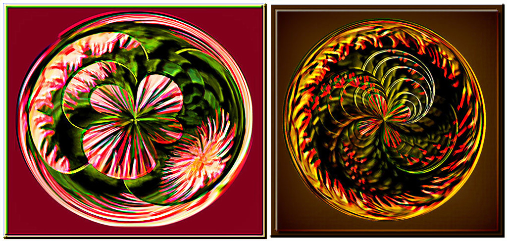 The images made into spheres makes a very unusual effect. I like the way the leaves provide a lot of depth. I have never tried spheric deformation in SPM; I will check it out, since I like the effect that it gives. |