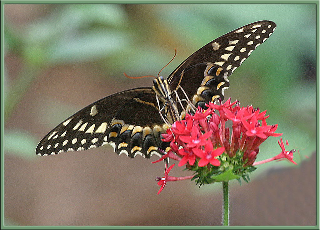 Barbara, I like the background; In my opinion,it makes the image. the plant is nice and sharp and the colors are great. I would have added a 3 pixel eggshell white border. I don't see the beige border. |
